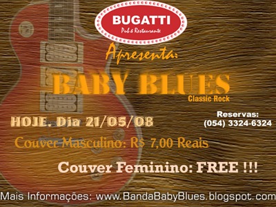ISso mesmo!! Grande Noite de QUarta, dia 21, véspera de feriado... A Banda Baby Blues espera você no Bugatti para mais um show de rock'n'blues. Vamos todos curtir essa grande noite. Esperamos você lá!! Let's Rock baby!!! Abraços